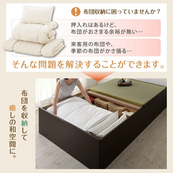 お客様組立 日本製・布団が収納できる大容量収納畳連結ベッド ベッドフレームのみ 美草畳 ワイドK240(S+D) 29cm