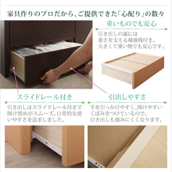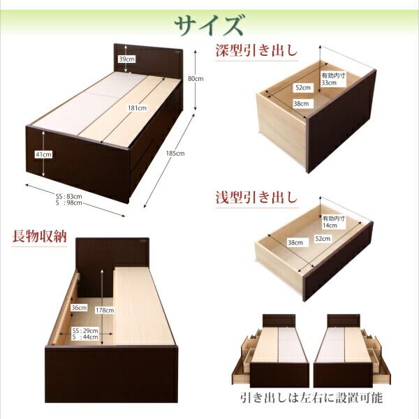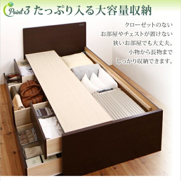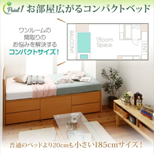 お客様組立 コンセント付き国産コンパクトチェスト収納ベッド 薄型スタンダードポケットコイルマットレス付き セミシングル ショート丈