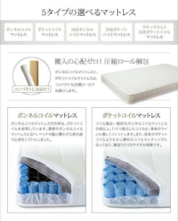 国産ポケットコイルマットレス付き クイーン(SS×2)