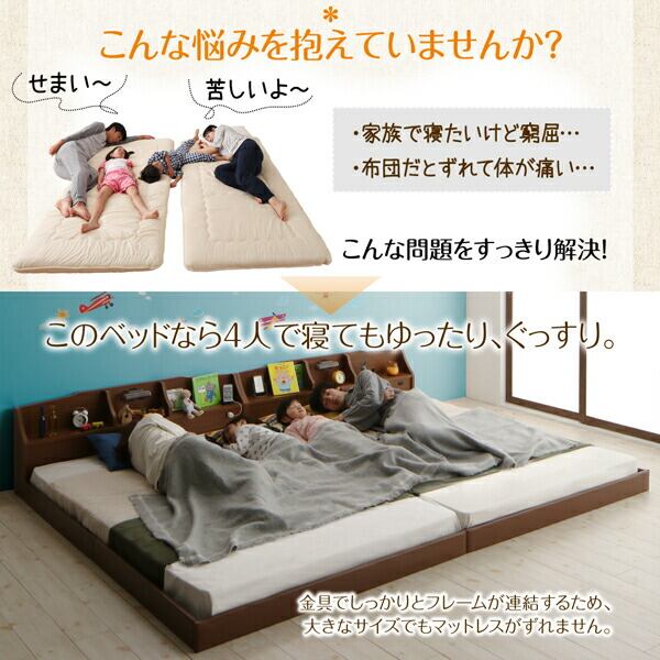 親子で寝られる収納棚・照明付き連結ベッド 国産ポケットコイルマットレス付き ワイドK280