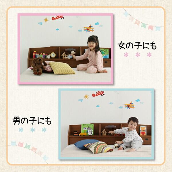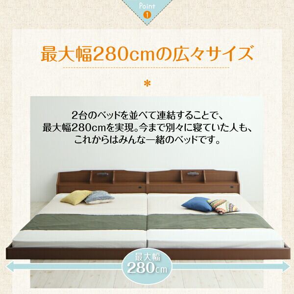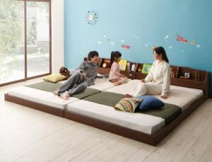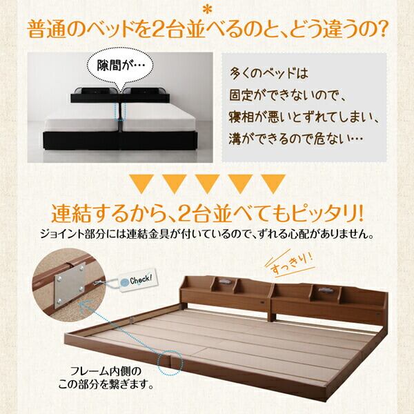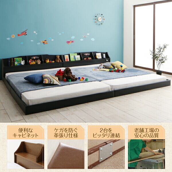親子で寝られる収納棚・照明付き連結ベッド 天然ラテックス入り国産ポケットコイルマットレス付き クイーン(SS×2)