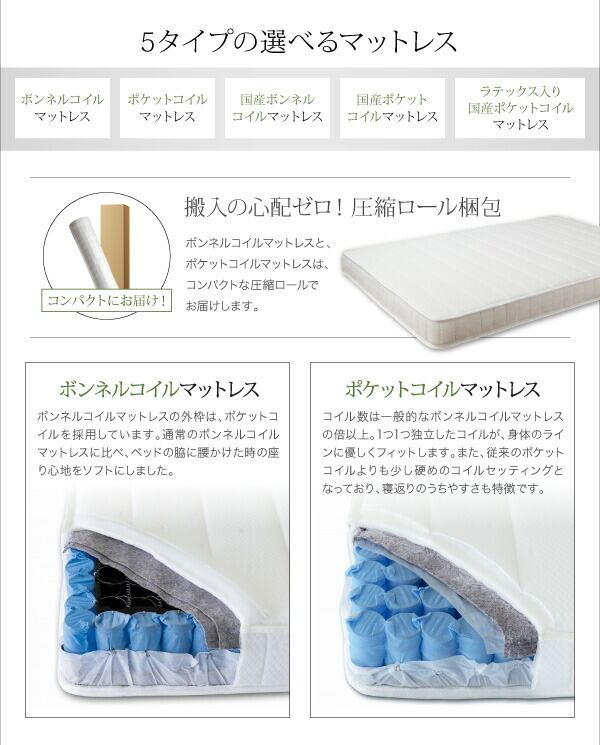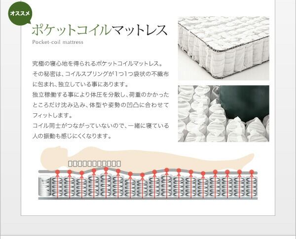 天然ラテックス入り国産ポケットコイルマットレス付き クイーン(SS×2)