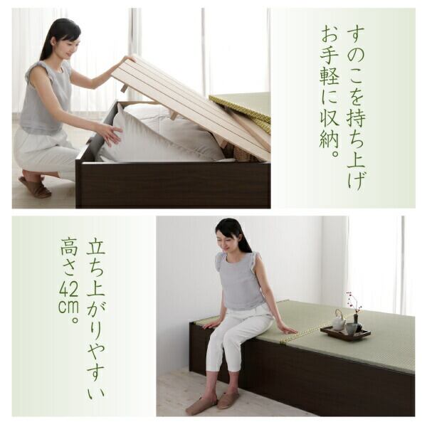 お客様組立 布団が収納できる棚・コンセント付き畳ベッド クッション畳 ダブル