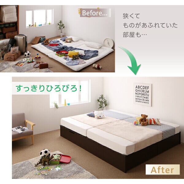 お客様組立 コンパクトに壁付けできる国産ファミリー収納連結ベッド ベッドフレームのみ B(S)+A(SD)タイプ ワイドK220