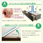 お客様組立 コンパクトに壁付けできる国産ファミリー収納連結ベッド 薄型抗菌国産ポケットコイルマットレス付き A+Bタイプ ワイドK200