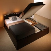お客様組立 棚・照明・コンセント付国産大型跳ね上げ収納ベッド 薄型スタンダードボンネルコイルマットレス付き 縦開き ワイドK200