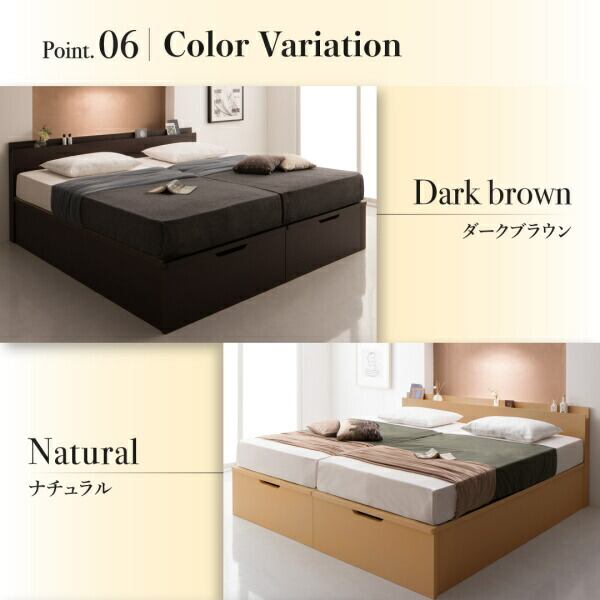 お客様組立 棚・コンセント付国産大型サイズ跳ね上げ収納ベッド 薄型抗菌国産ポケットコイルマットレス付き 縦開き キング(SS+S)