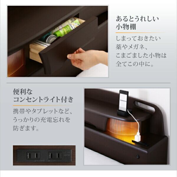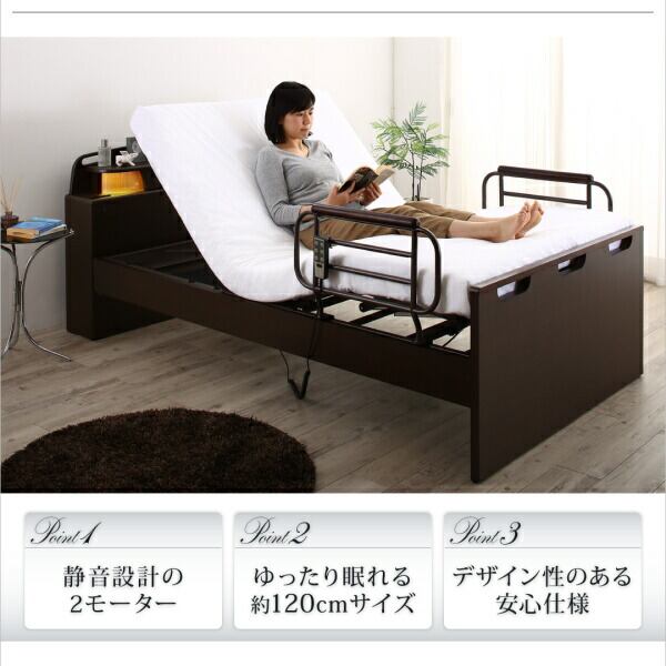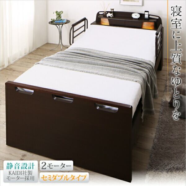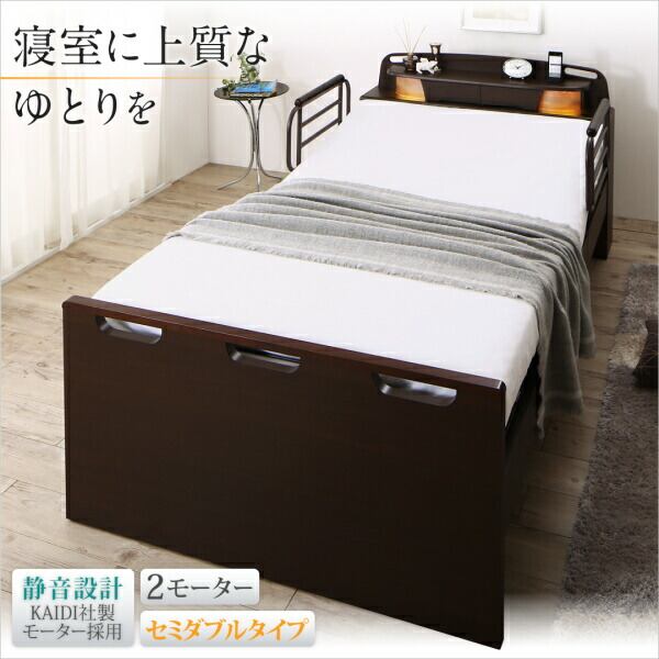 お客様組立 寝返りができる棚・コンセント・ライト付き幅広電動介護ベッド ウレタンマットレス付き 2モーター セミダブル