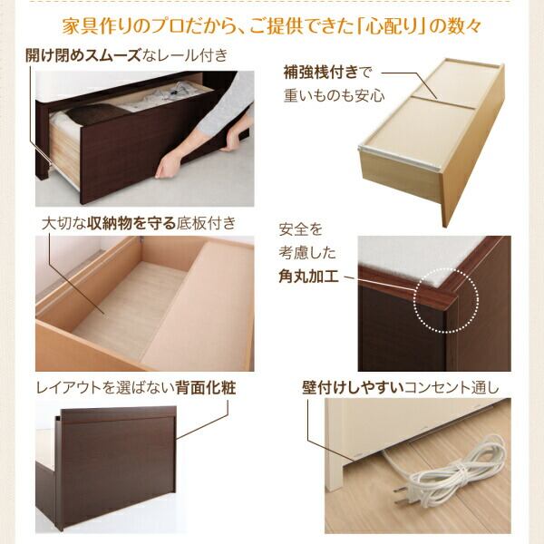 お客様組立 壁付けできる国産ファミリー連結収納ベッド 薄型抗菌国産ポケットコイルマットレス付き Bタイプ シングル