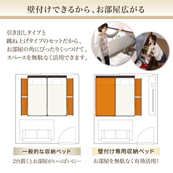 お客様組立 壁付できる棚コンセント付国産ファミリー収納ベッド 薄型抗菌国産ポケットコイルマットレス付き A+Bタイプ ワイドK200