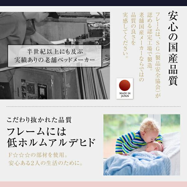 国産 コンセント・照明付 カップルにうれしいフロアベッド ポケットコイルマットレス付き セミダブル