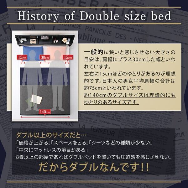 国産 コンセント・照明付 カップルにうれしいフロアベッド 国産ポケットコイルマットレス付き ダブル