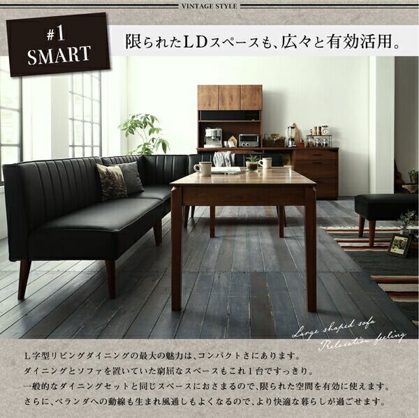 大人数でもゆったりくつろげる 大型L字リビングダイニングセット 5点セット(テーブル+2Pソファ2脚+アームソファ1脚+ベンチ1脚) 右アーム W120-180