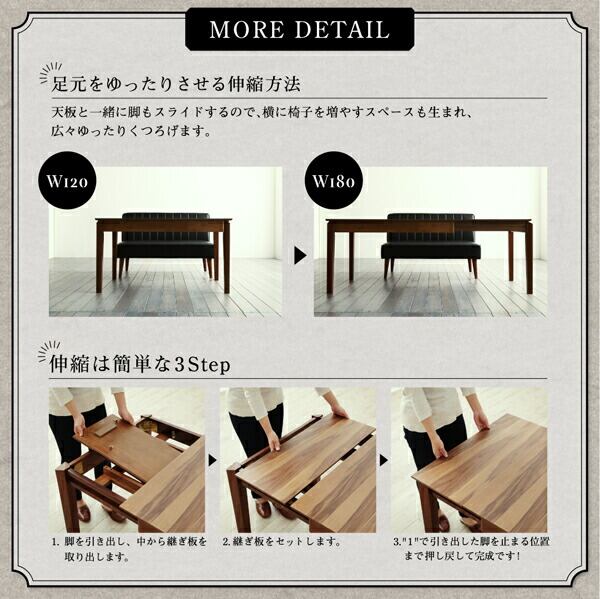 ダイニング 4点セット(テーブル+2Pソファ2脚+アームソファ1脚) 左アーム W120-180