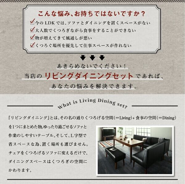 大人数でもゆったりくつろげる 大型L字リビングダイニングセット 4点セット(テーブル+2Pソファ2脚+アームソファ1脚) 左アーム W120-180