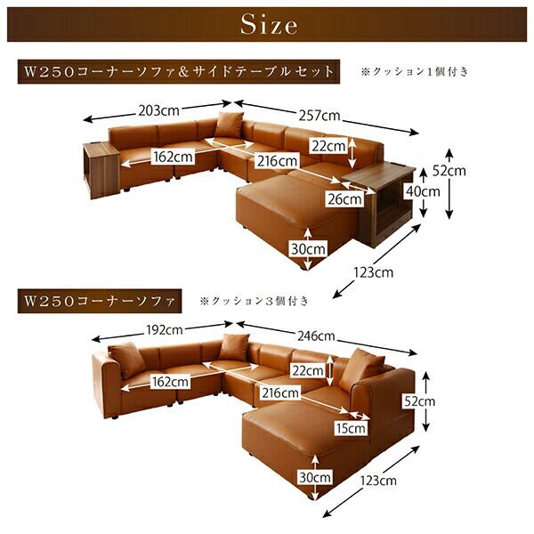 レイアウト自由自在大型L字ヴィンテージデザインコーナーソファ ソファ&サイドテーブルセット 幅300cm