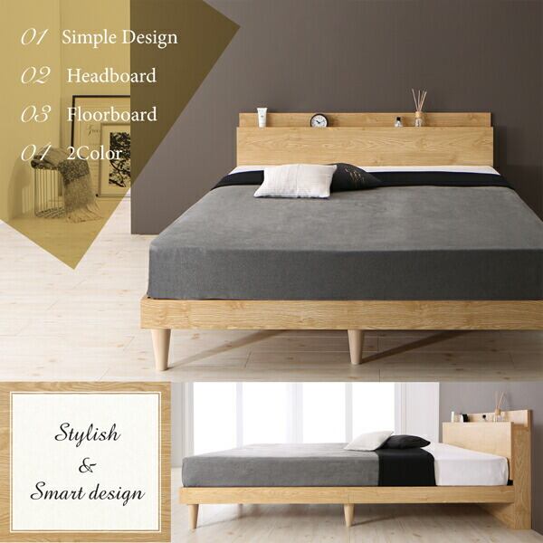棚・コンセント付きデザインすのこベッド プレミアムポケットコイルマットレス付き セミダブル