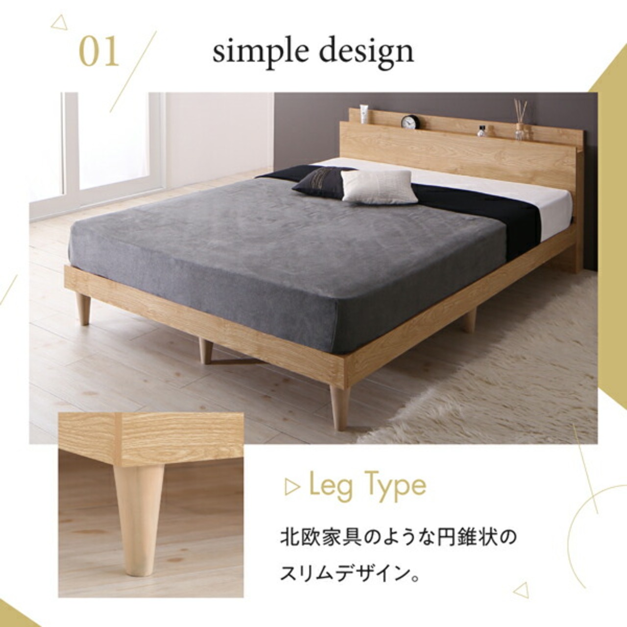 棚・コンセント付きデザインすのこベッド プレミアムポケットコイルマットレス付き ダブル