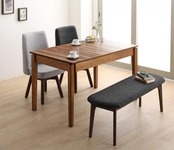 ダイニング4点セット(テーブル+チェア2脚+ベンチ1脚) W120-180
