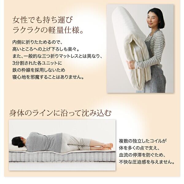 三つ折り薄型ポケットコイル セミシングル レギュラー丈 厚さ7cm