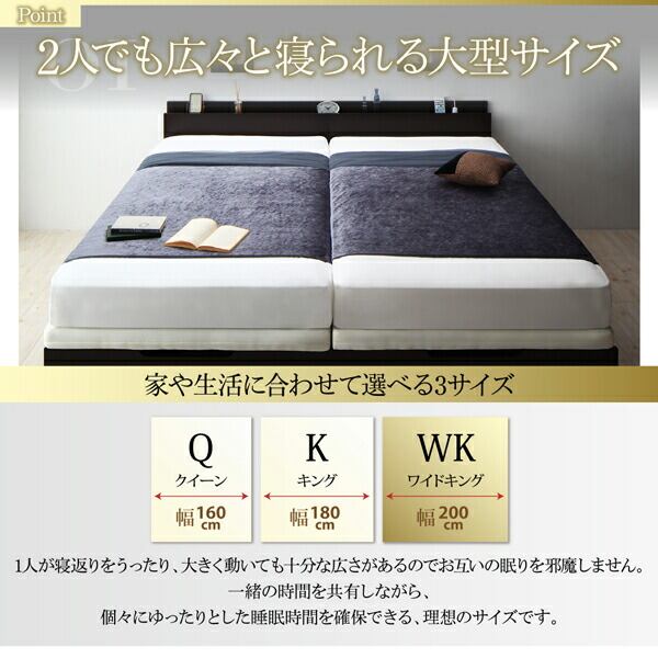 お客様組立 大型跳ね上げすのこベッド 薄型プレミアムポケットコイルマットレス付き 縦開き ワイドK200 レギュラー