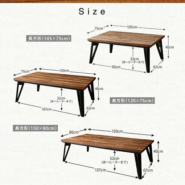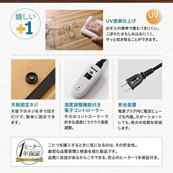 天然木北欧モダンデザインフラットヒーターこたつ 長方形(75×105cm)