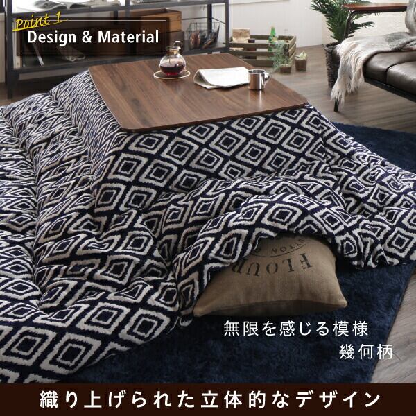 ヴィンテージ調 幾何柄織りこた布団 掛布団&敷布団2点セット 4尺長方形(80×120cm)天板対応