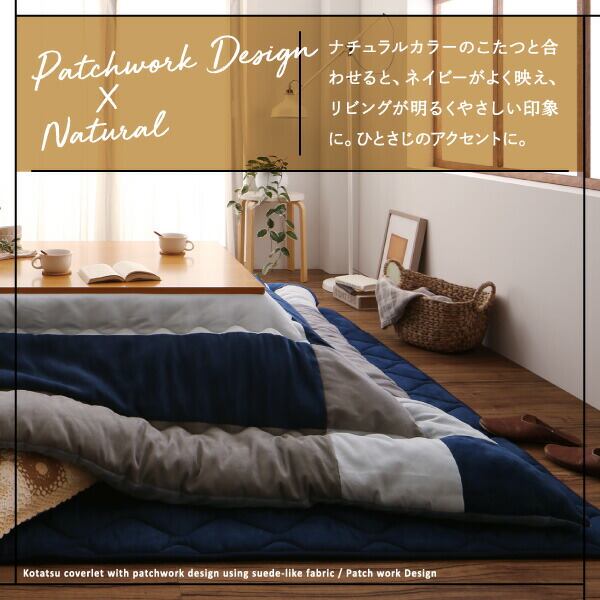 スウェード調パッチワークこたつ布団 こたつ用掛け布団 正方形(75×75cm)天板対応