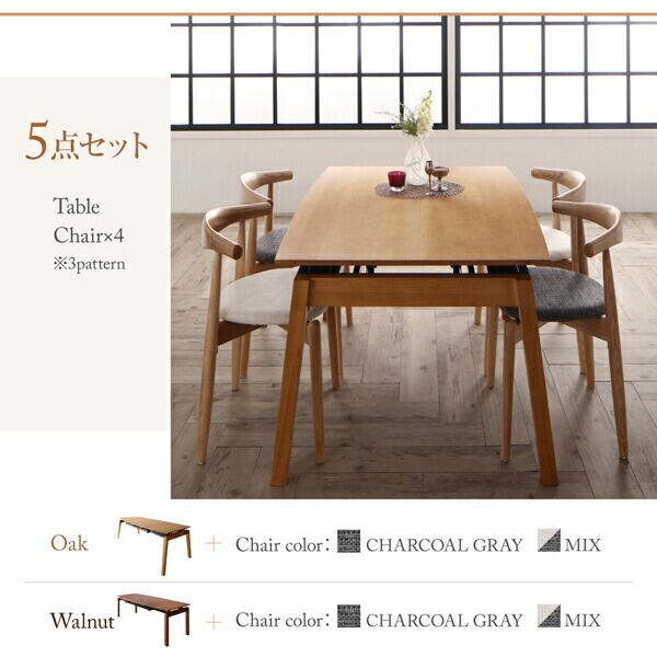 オーク材・ウォールナット材 北欧伸縮式ダイニング 4点セット(テーブル+チェア2脚+ベンチ1脚) W140-240