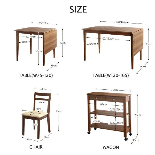 ダイニング3点セット(テーブル+チェア2脚) ワゴンなし W75-120