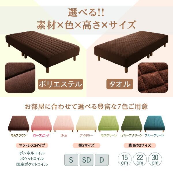素材・色が選べるカバーリング脚付きマットレスベッド 敷きパッド一体型ボックスシーツ パッド一体型ボックスシーツ タオル素材 シングル