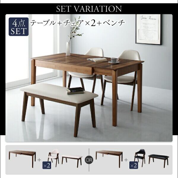 天然木ウォールナット材モダンデザイン伸縮式ダイニングセット 5点セット(テーブル+チェア4脚) W120-180