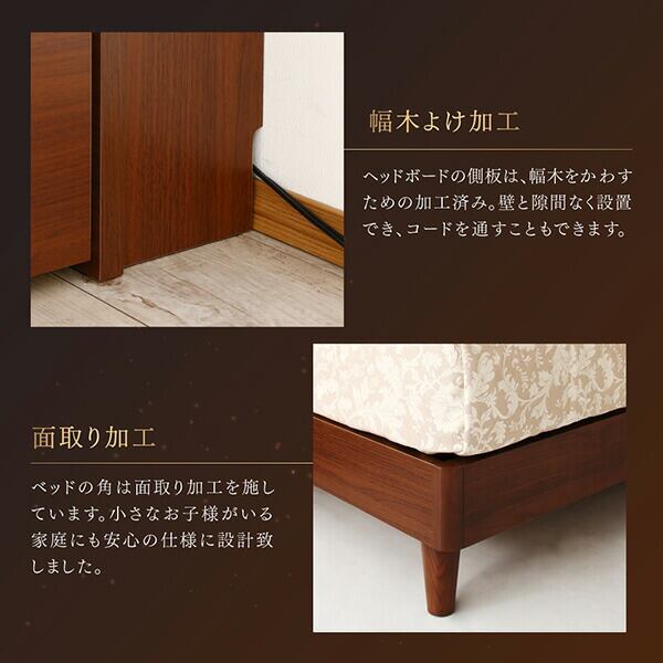 高級ウォルナット材ツインベッド ベッドフレームのみ ツイン(S+SD)