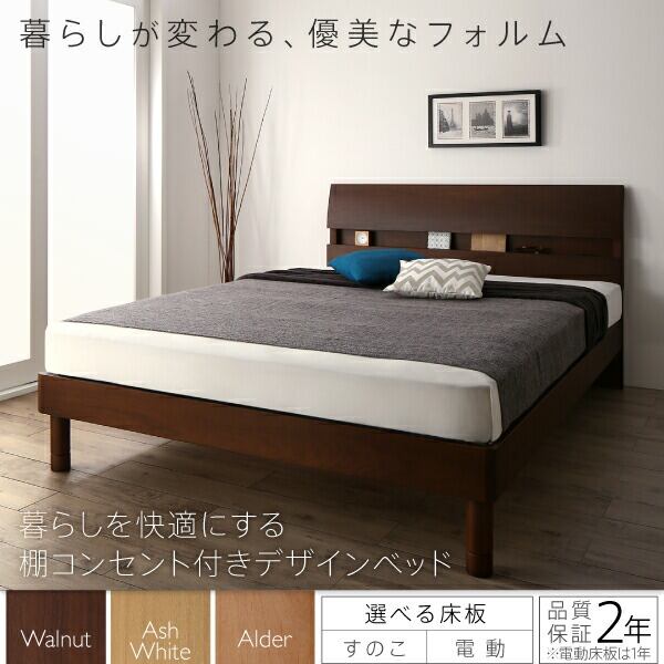 暮らしを快適にする棚コンセント付きデザインベッド ベッドフレームのみ すのこタイプ シングル