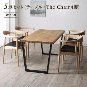 天然木オーク無垢材の高級デザイナーズダイニング 5点セット(テーブル+チェア4脚) W150