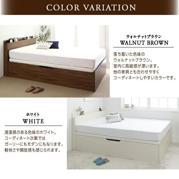 お客様組立 通気性抜群 棚コンセント付 跳ね上げすのこベッド 薄型スタンダードポケットコイルマットレス付き 縦開き セミダブル 深さラージ