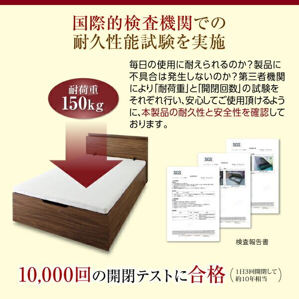 お客様組立 通気性抜群 棚コンセント付 跳ね上げすのこベッド 薄型スタンダードボンネルコイルマットレス付き 横開き シングル 深さラージ