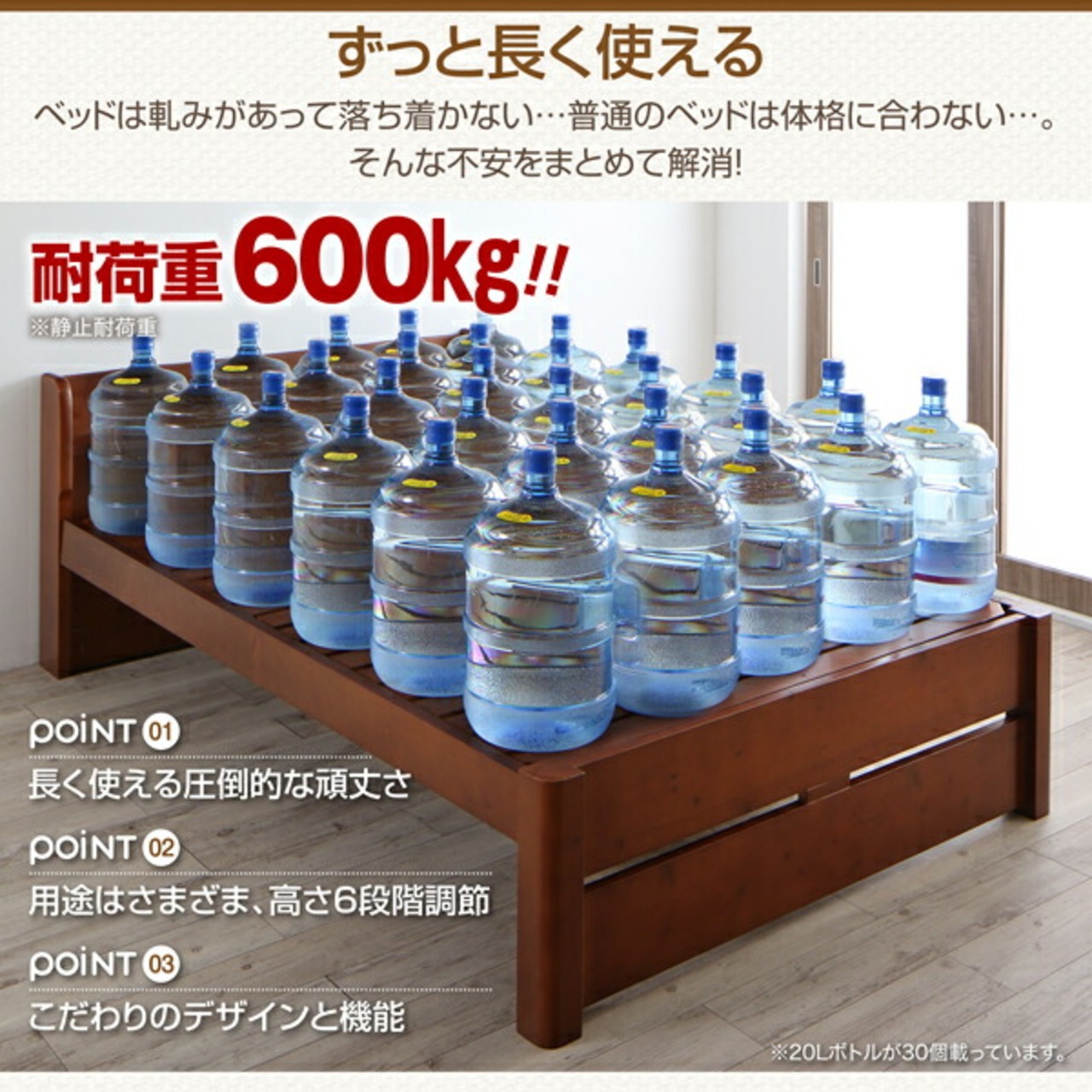 耐荷重600kg 6段階高さ調節 コンセント付超頑丈天然木すのこベッド スタンダードポケットコイルマットレス付き セミダブル