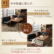 こたつもソファも高さ調節ヴィンテージリビングダイニング 4点セット(テーブル+ソファ1脚+アームソファ1脚+ベンチ1脚) 右アーム W135