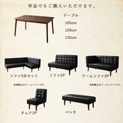 ダイニング4点セット(テーブル+ソファ1脚+アームソファ1脚+ベンチ1脚) 右アーム W135