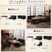 こたつもソファも高さ調節ヴィンテージリビングダイニング 4点セット(テーブル+ソファ1脚+アームソファ1脚+チェア1脚) 左アーム W120