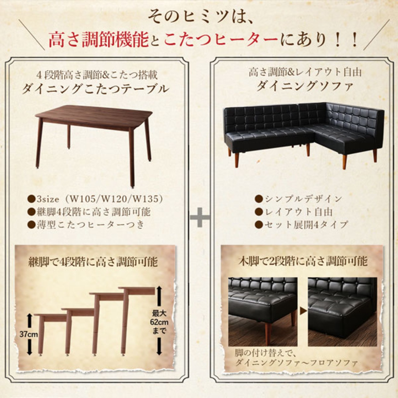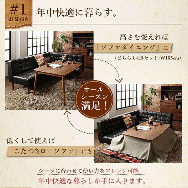 こたつもソファも高さ調節ヴィンテージリビングダイニング ダイニングソファ 2P