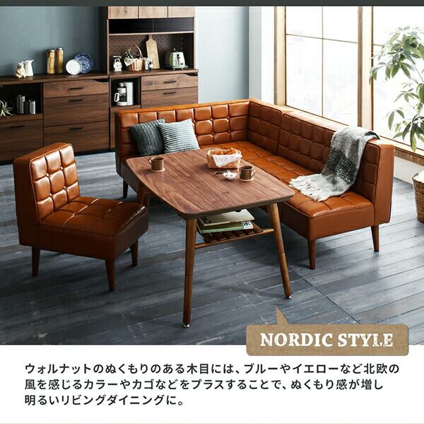 こたつもソファも高さ調節 ヴィンテージリビングダイニング 3点セット(テーブル+ソファ1脚+アームソファ1脚) 右アーム W105