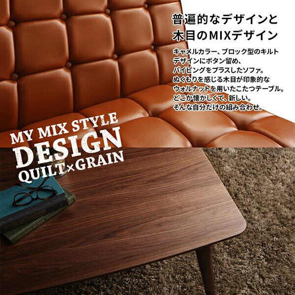 こたつもソファも高さ調節 ヴィンテージリビングダイニング 4点セット(テーブル+ソファ1脚+アームソファ1脚+チェア1脚) 左アーム W105
