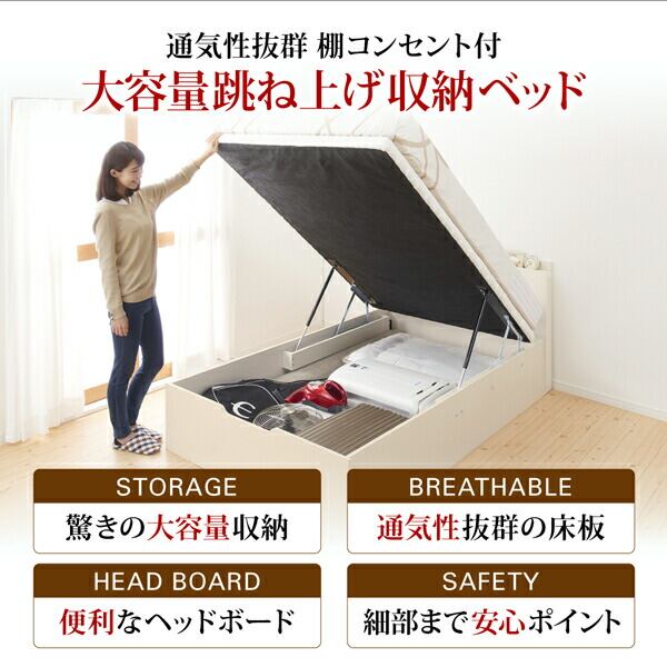お客様組立 通気性抜群 すのこ構造 棚コンセント付 跳ね上げベッド ベッドフレームのみ セミシングル 深さラージ
