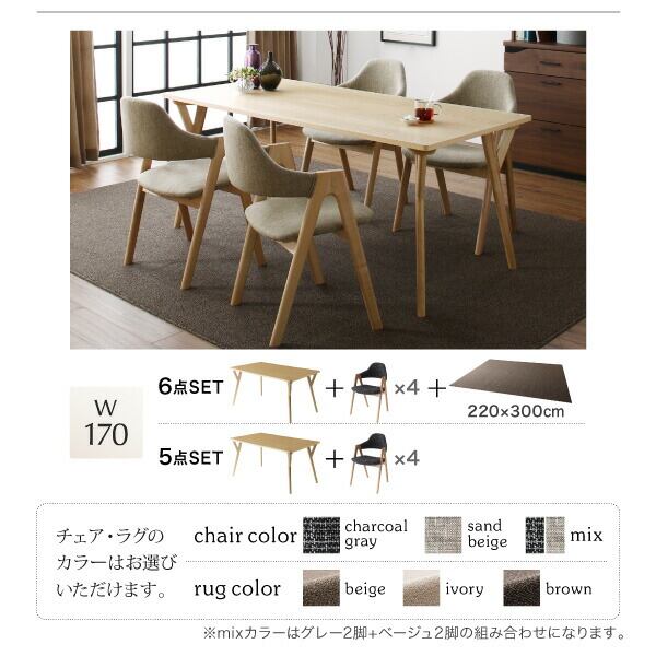 ダイニング5点セット(テーブル+チェア4脚) W170