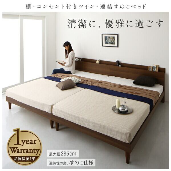 棚・コンセント付きツイン連結すのこベッド ベッドフレームのみ ワイドK240(S+D)