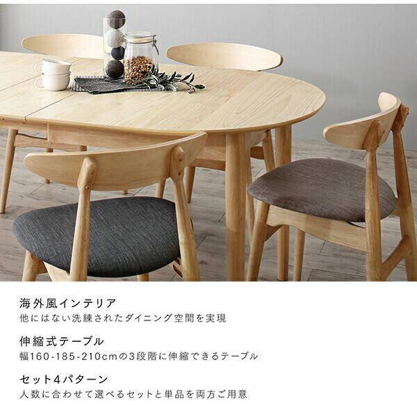 天然木アッシュ材 伸縮式オーバルデザインダイニング ダイニングチェア 2脚組
