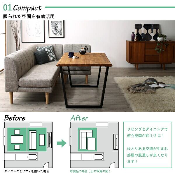 ダイニング 5点セット(テーブル+2Pソファ1脚+1Pソファ2脚+コーナーソファ1脚) W150