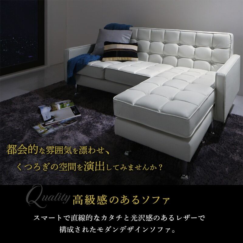 l字 レザー コーナーカウチソファ 3P